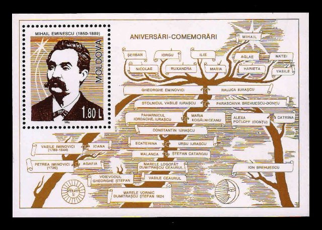 MOLDOVA 1996 – Mihail Eminescu (Poet), S.G. MS 228, S/Sheet, MNH