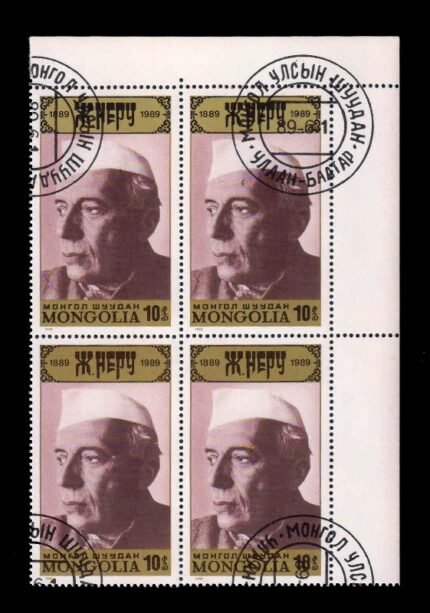 MONGOLIA 1989 – Jawahar Lal Nehru, Block of 4 Stamps, Cancelled