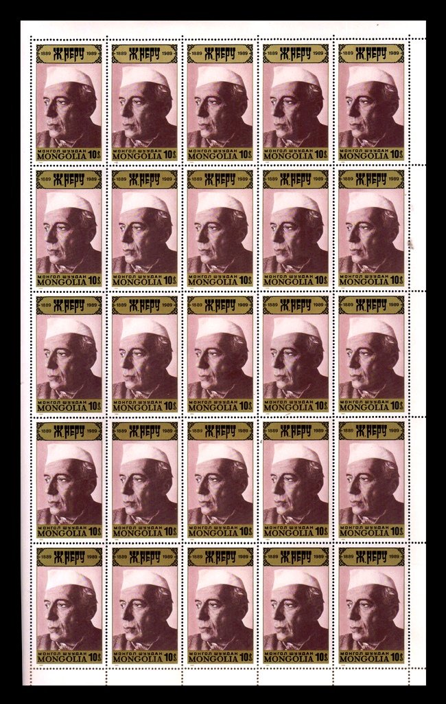 MONGOLIA 1989 – Jawahar Lal Nehru, Sheet of 25 Stamps, MNH