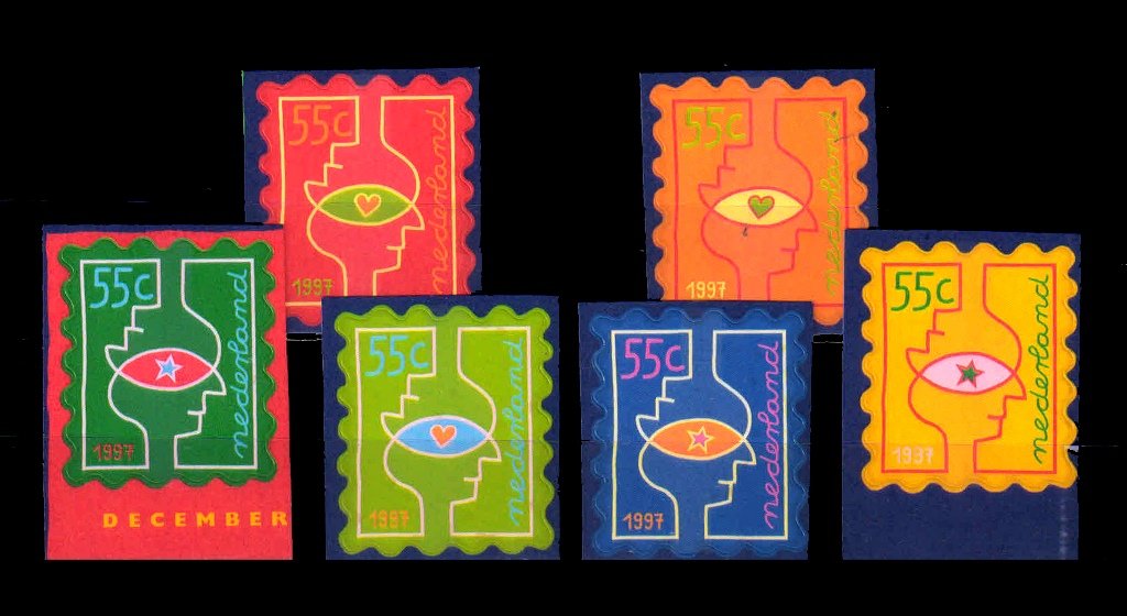 NETHERLANDS 1997 – Christmas, Heads and Star, Heart, Set of 6, Self Adhesive Stamps, MNH, S.G. 1860-1865, Cat. £ 8