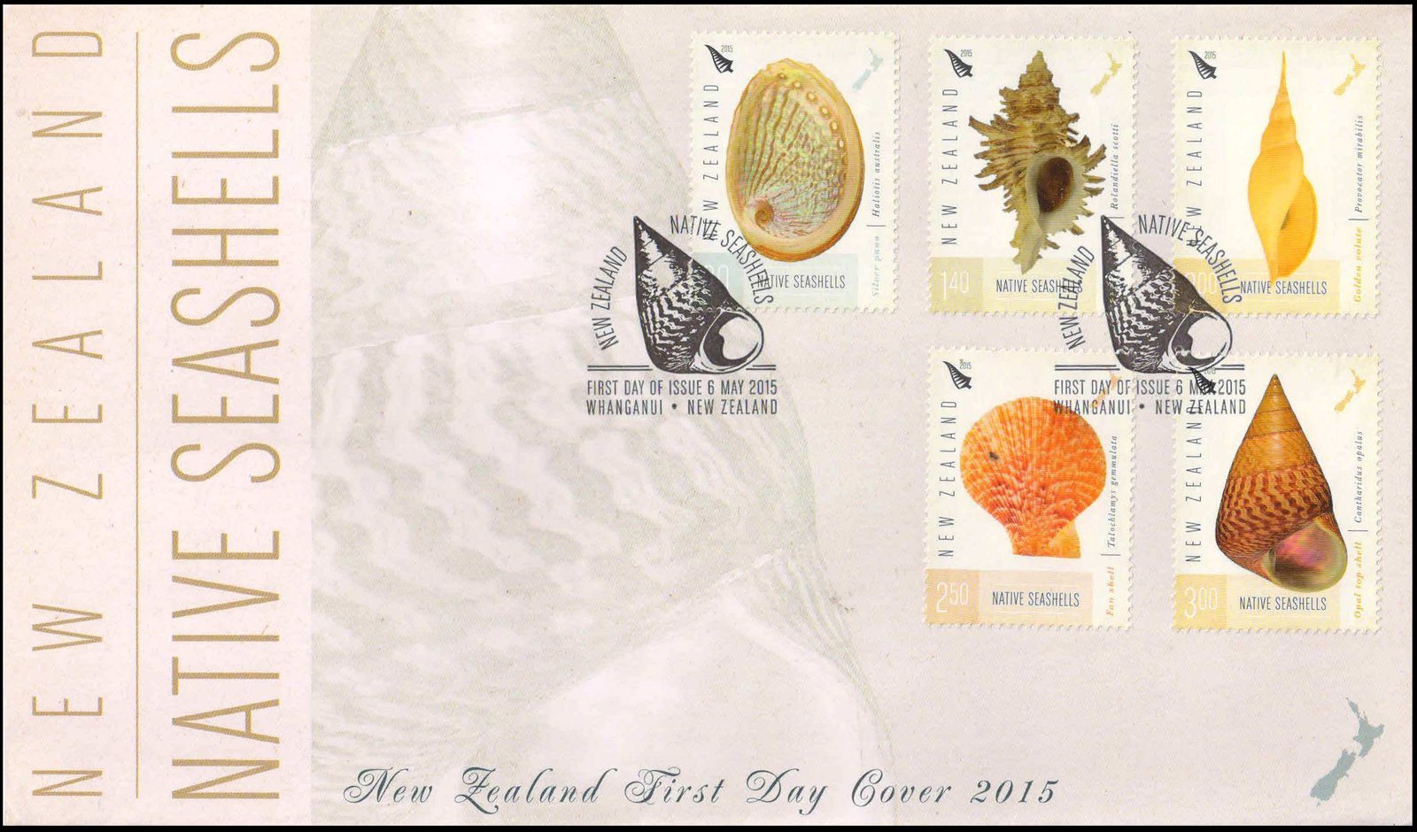 NEW ZEALAND 2015-Native Sea Shells, Set of 5 on First Day Cover, Face $ 10.50
