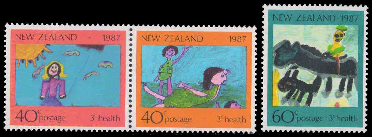NEWZEALND 1987-Health Stamps, Children Paintings, Set of 3, MNH