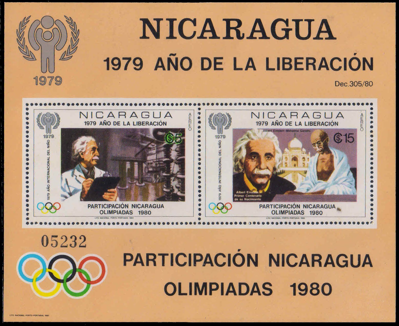 NICARAGUA 1980-Mahatma Gandhi & Einstein-S/Sheet of 2 Stamps, Limited Issue, Extremely Rare