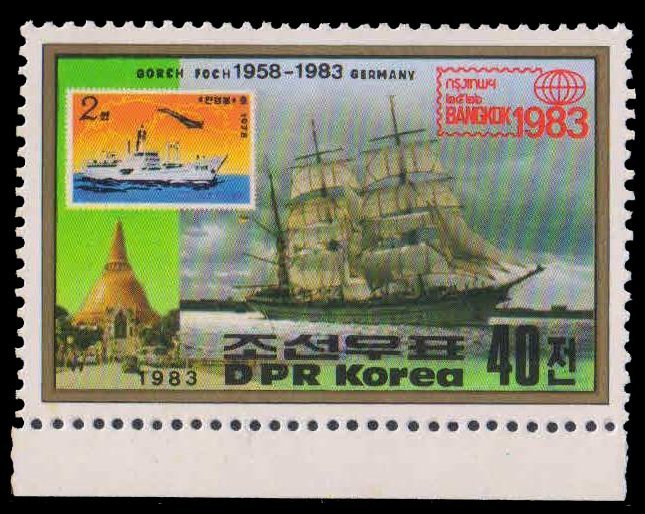NORTH KOREA 1983-Bangkok 1983 International Stamp Exhibition, Ship, Stamp on Stamp, 1 Value, MNH, S.G. N 2334-Cat ? 4.25
