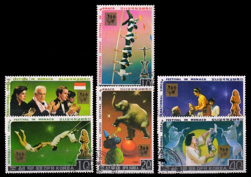 NORTH KOREA 1987 – International Circus Festival, Monaco, Set of 6, Used, S.G. 2702-2707
