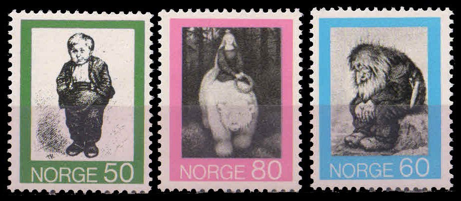 NORWAY 1972-Norwegian Folk Tales, Drawings, Painting, S.G. 693-95-Set of 3, MNH, Cat ? 3.60-
