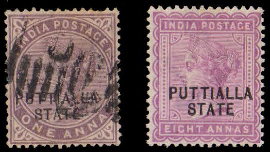 PATIALA STATE 1885-Queen Victoria 1 & 8 As, Ovpt. PUTTIALLA in Block, As per Scan, S.G. 11-12-Cat ? 66-