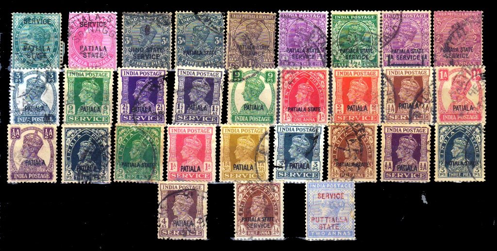 PATIALA STATE – 30 Different Used, Stamp of India, Overprint Patiala, Queen Victoria, King Edward, King George V, VI