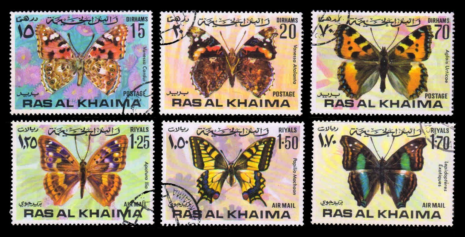 RAS AL KHAIMA 1970 – Butterflies, Set of 6 Stamps, Cancelled