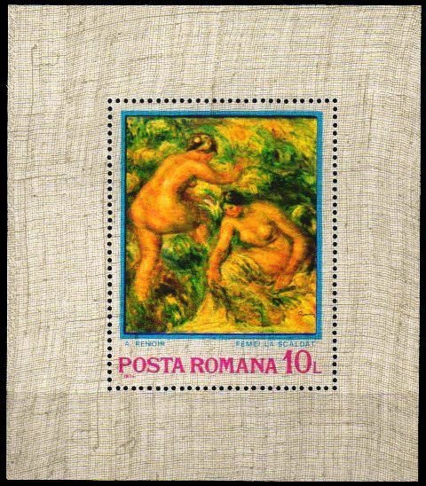 ROMANIA 1974-Nude Painting, Women Bathing by Renoir, S.G. MS 4062, Miniature Sheet, MNH