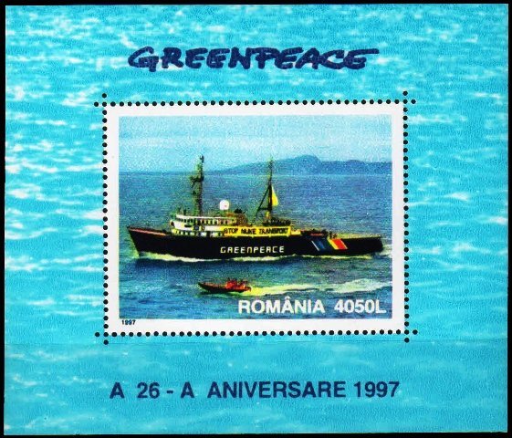 ROMANIA 1997-Greenpeace, Environmental organisation, Ship, Miniature Sheet, MNH, S.G. MS 5865