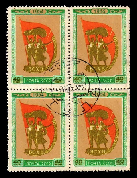 Home Foreign Country Composition & Packets (A to Z) R-USED Russia Used Sets- RUSSIA 1954 – Agriculture Exhibition Emblem, Block of 4, Used, S.G. 1859