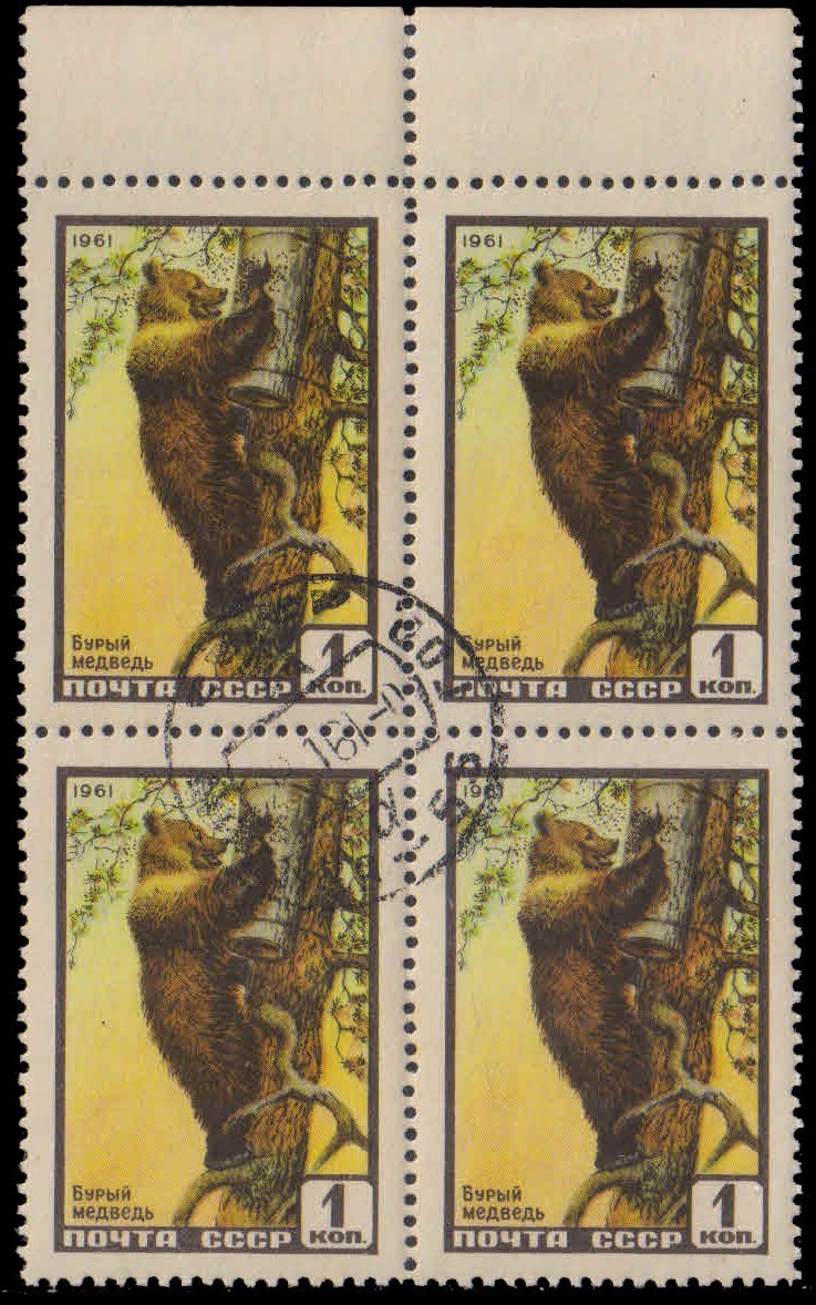 RUSSIA 1961-Russian Wild Life, Brown Bear, S.G. 2534-Block of 4, Used