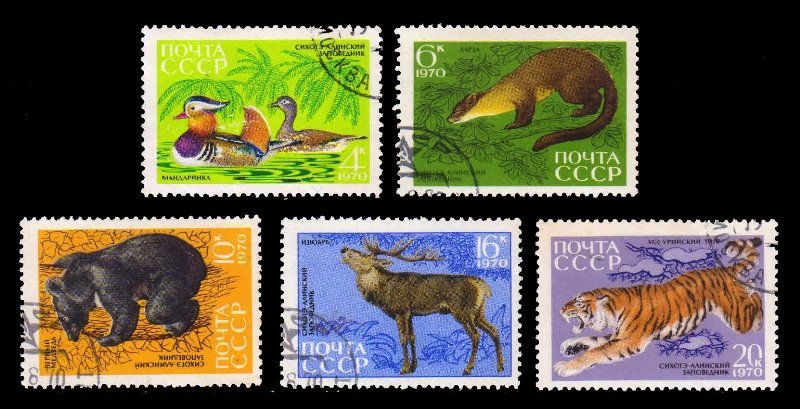 RUSSIA 1970 – Animals and Birds, Set of 5, Used Stamps, S.G. 3850-3854