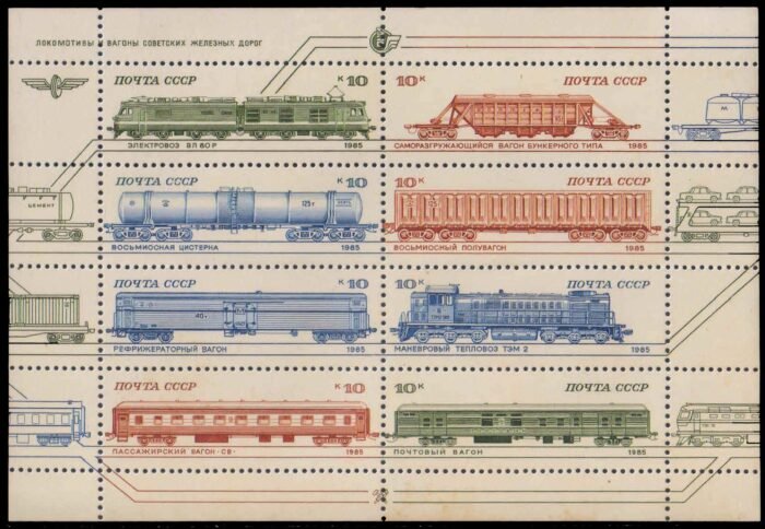 RUSSIA 1985-Locomotive, Oil Tanker & Wagon, Mail Van, Set of 8, MNH, S.G. 5564-5571-Cat £ 8