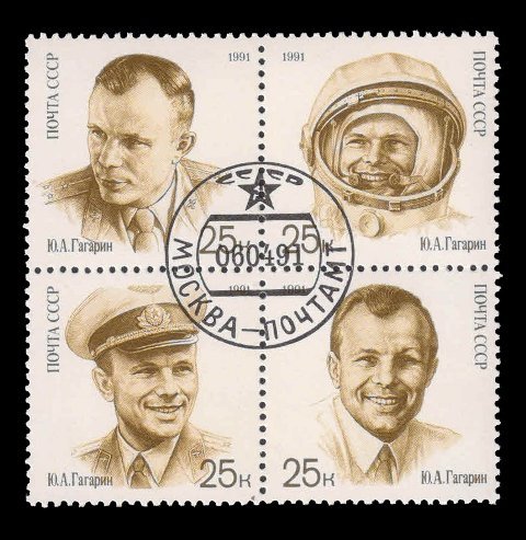 RUSSIA 1991 – Cosmonauts Day, 30th Anniversary of 1st Man in Space, Block of 4 Stamps, Used, S.G. 6238-6241