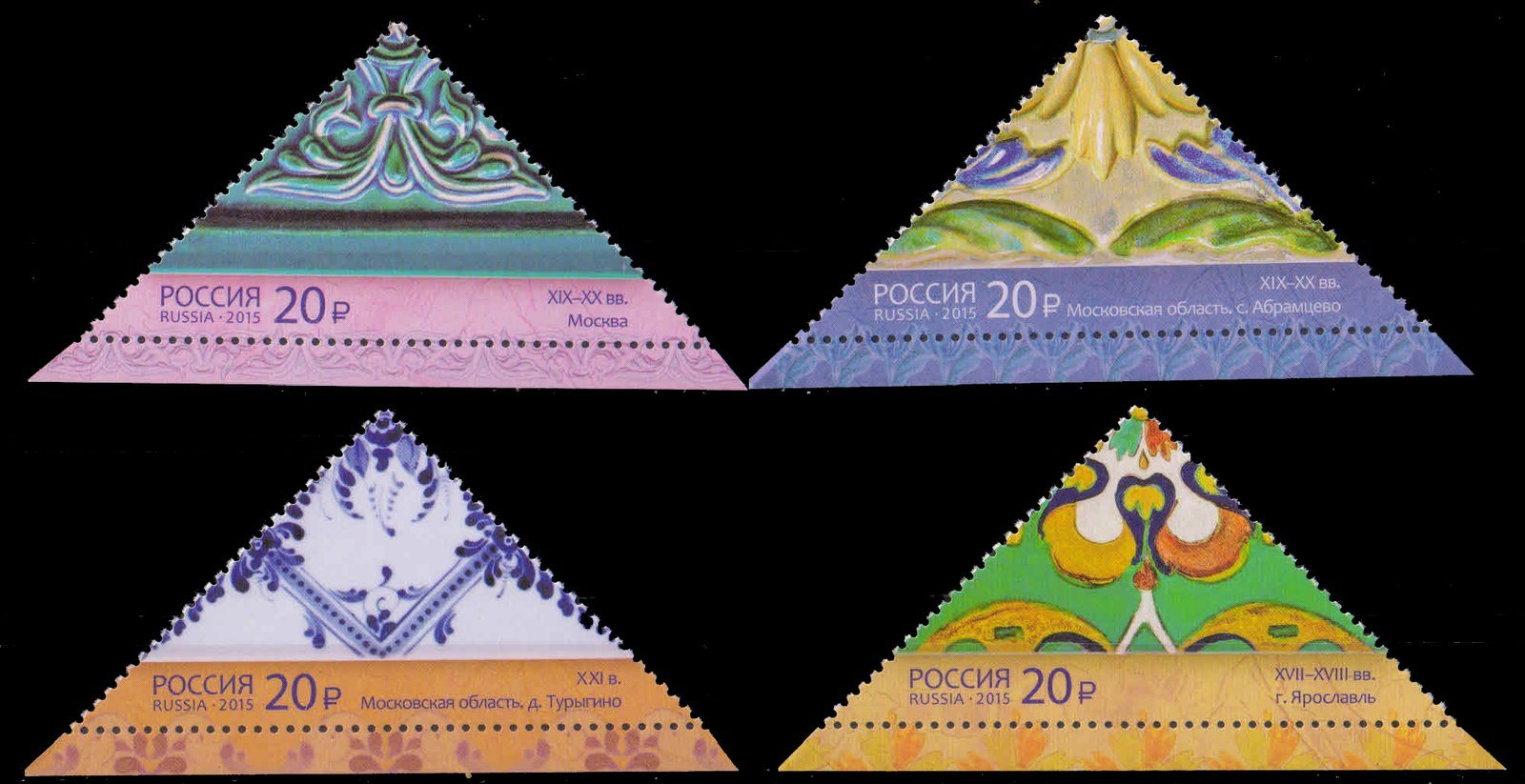 RUSSIA 2015-Arts & Crafts of Russia, Tiles, Triangular Staps-Set of 4, MNH, S.G. 8177-8180-Cat £ 20