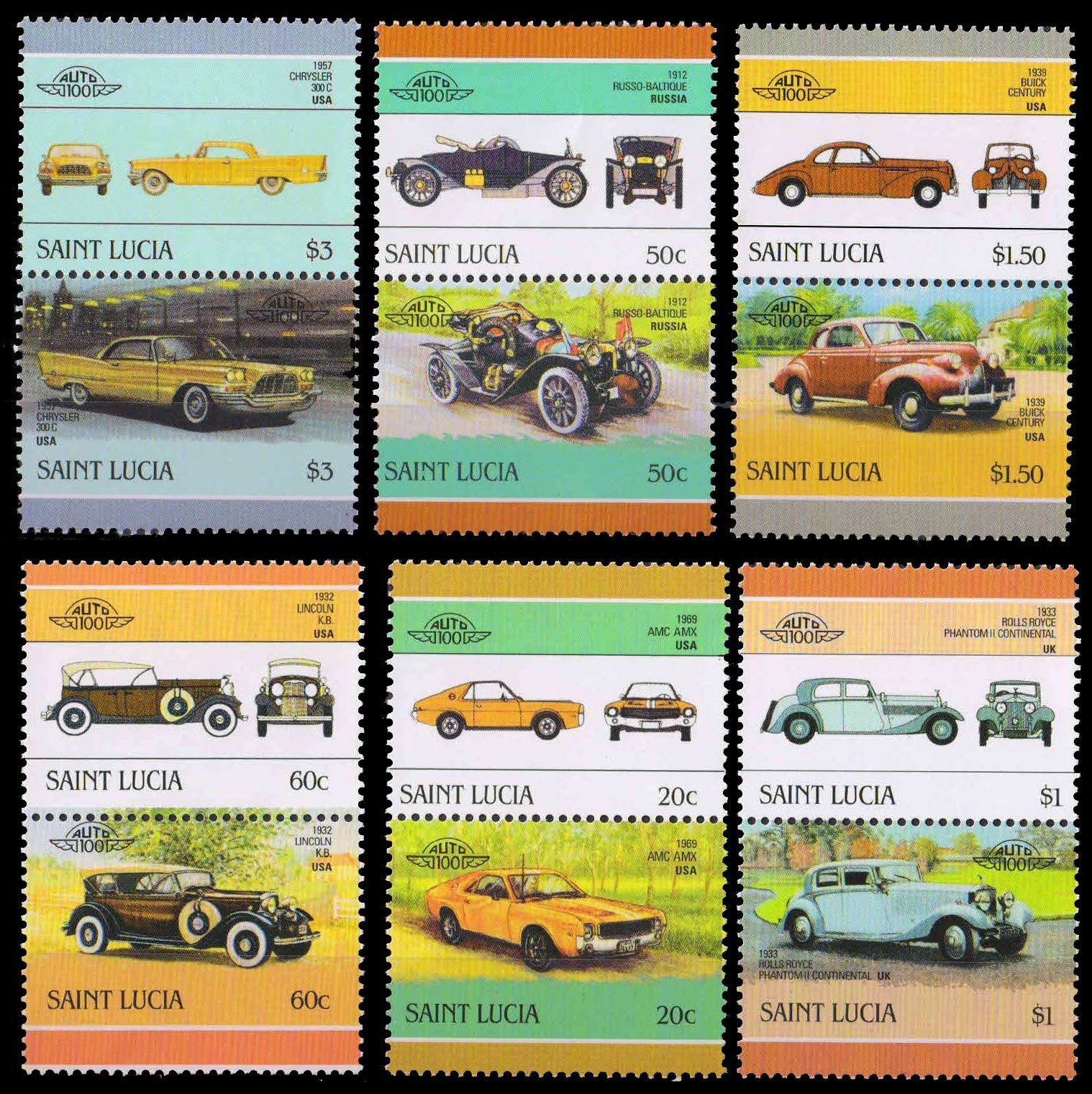 SAINT LUCIA, Cars, Automobiles, Cars-Set of 12, MNH-Face $ 12.60