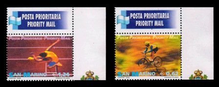Home Foreign Mint Stamps Countrywise S-Mint SANMARINO SAN MARINO 2002 – Sports, Cyclist & Hurdler, Priority Mail Stamps. . Set of 2 MNH Stamps. S.G. 1894-95. Cat £ 6.10