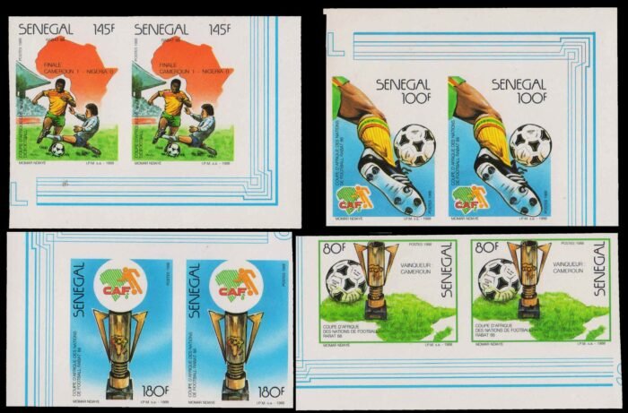 Senegal 1988, Africa Cup Football set of 4 Imperf Pair, MNH S.G. 946-949, Imperf Pairs with margin, Scare
