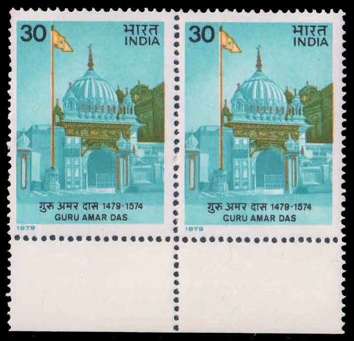 Sikh Guru Amar Das gurudwara G Broken Variety with Normal Pair Stamps, India 1979 constant Variety, Error