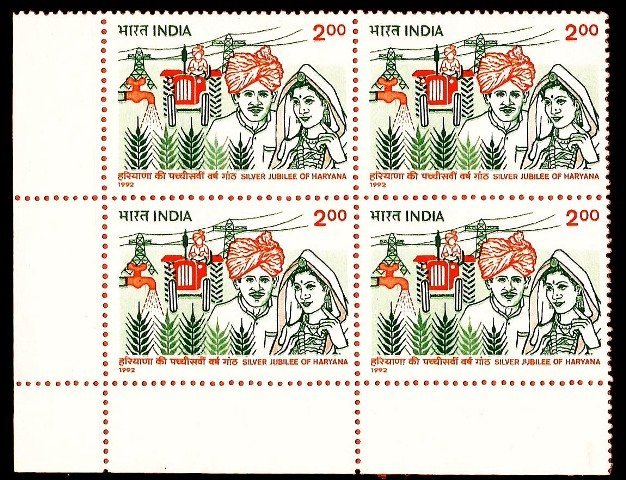 Home INDIA MINT BLOCKS 1947 to Till 1992-Blocks INDIA -Silver Jubilee of Haryana State, 2 Rs. Blk of 4