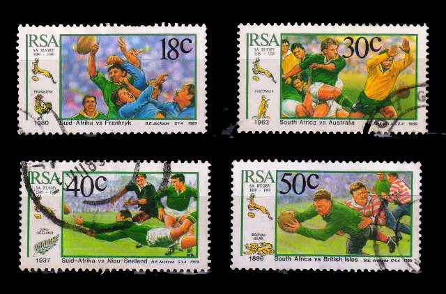 SOUTH AFRICA 1989 – Centenary of South African Rugby Board, Sports, Set of 4 Used Stamps, Cat. £ 5