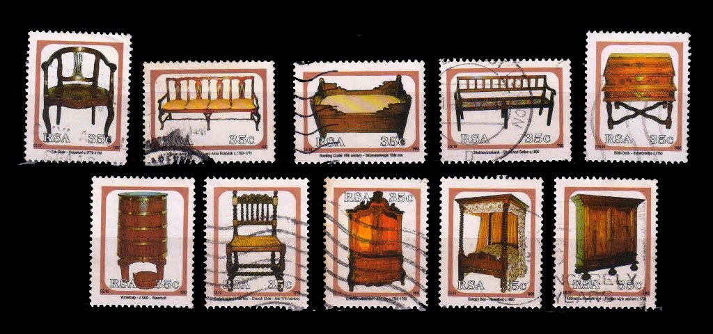 SOUTH AFRICA 1992 – Antique Cape Furniture, Chair, Cabinet, Desk, Armoire, Set of 10 Used Stamps, S.G. 750-759