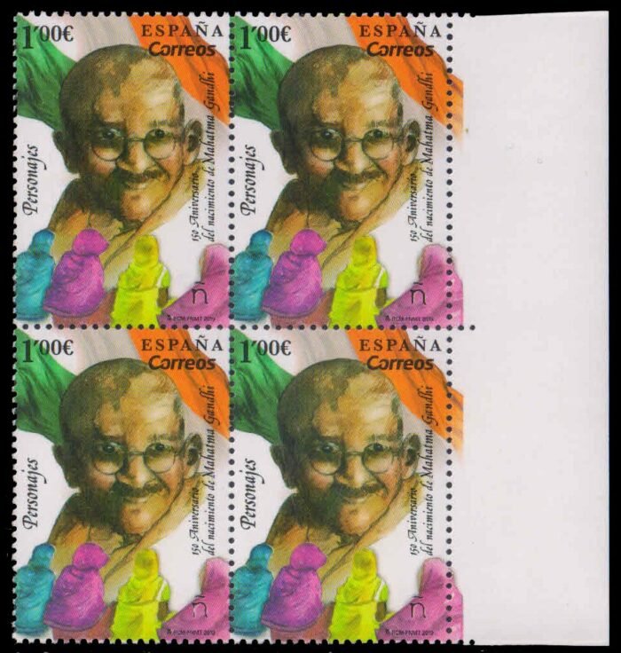 SPAIN 2019-150th Birth Anniv. of Mahatma Gandhi-Block of 4, MNH