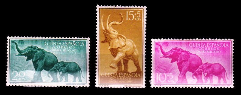 Home Foreign Country Composition & Packets (A to Z) S-USED Spanish Guinea- SPANISH GUINEA 1957 – African Elephant and Calf, Elephant Trumpeting, Set of 3 Stamps, MNH, S.G. 422-425