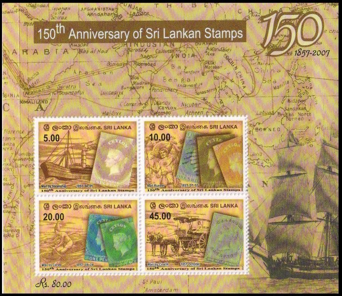SRI LANKA 2007, 150th Anniv. of Sri Lanka Stamps, Stamp on Stamp, Sheet of 4, MNH, S.G. MS 1870-Cat ? 6-