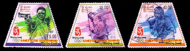 SRI LANKA 2008 – Beijing Olympic Games. Pistol Shooting, Javelin & Boxing. Odd Shaped. Set of 3, Used. Cat £ 4.00