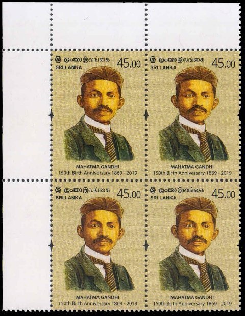SRI LANKA 2019-Mahatma Gandhi, 150th Birth Anniversary, 1 Value, Block of 4, As per Scan