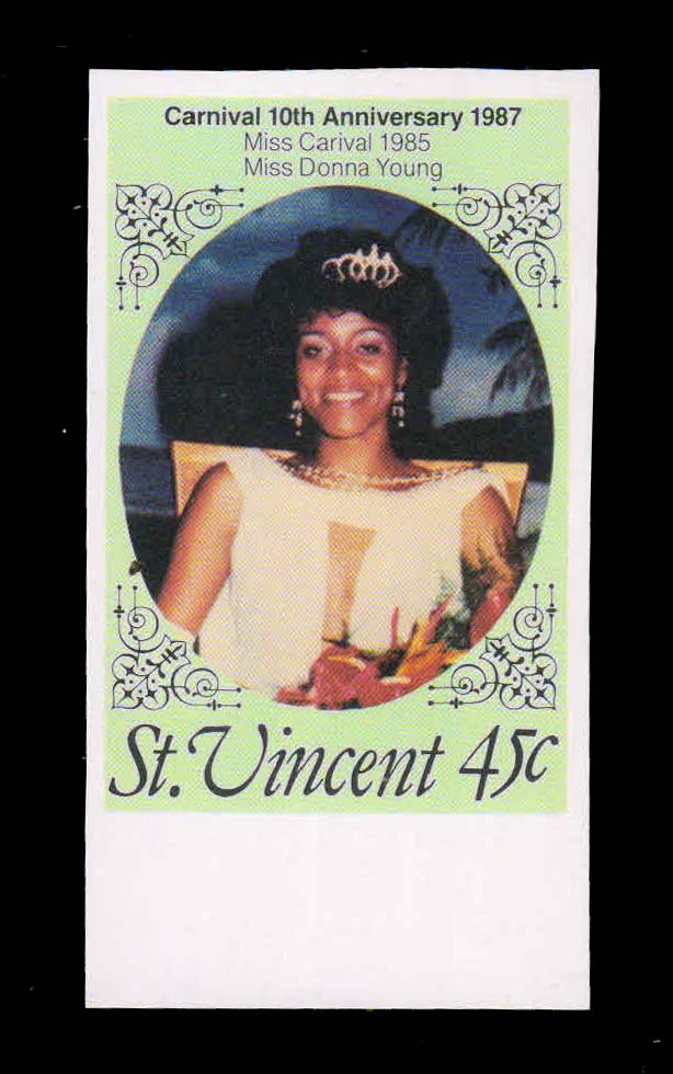 ST. VINCENT 1987 – Donna Young, Miss Carnival 1985, 1 Value Stamp, Imperf with Side Margin, MNH, S.G. 1067