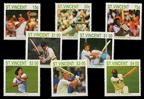 ST. Vincent – Cricketers of 1988 International Season – Kapil Dev, Gavaskar, Imran Khan, Botham Richards etc. Complete Set of 8 Stamps, MNH Stamps