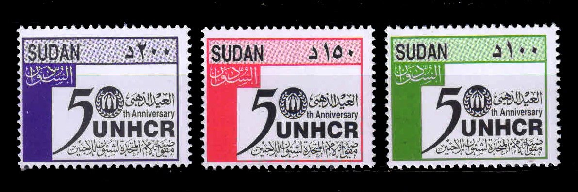 SUDAN 2001 – 50th Anniversary of UN High Commissioner for Refugees, Set of 3 Stamps, MNH, S.G. 601-603, Cat. £ 6.00