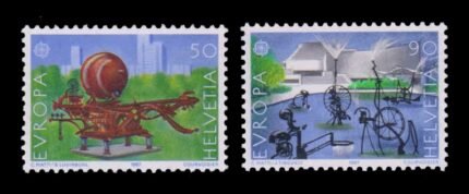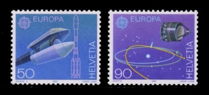 SWITZERLAND 1949 – Universal Postal Union, Globe, Ribbon and Pigeons, Set of 2 Stamps, Mint Hinged, S.G. 504-505