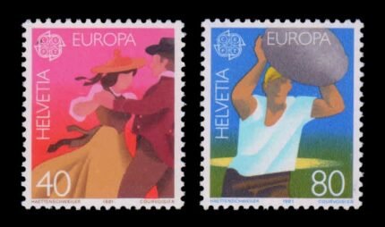 SWITZERLAND 1981 – EUROPA, Dancing Couple, Stone Putter, Set of 2 Stamps, MNH, S.G. 1008-1009, Cat. £ 4