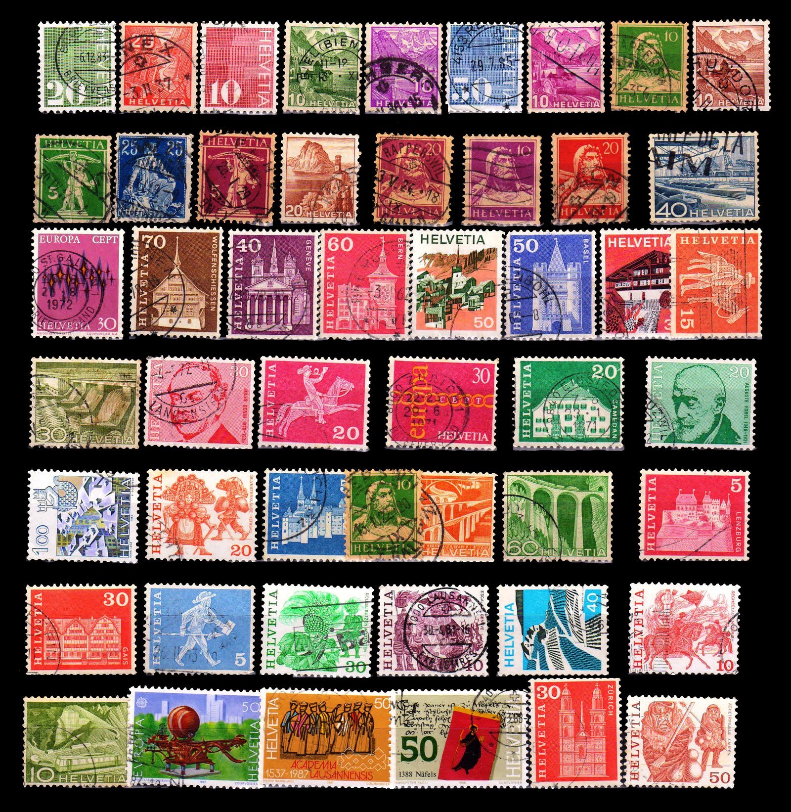SWITZERLAND – 50 Different. Large & Small. Mostly Old Used Stamps