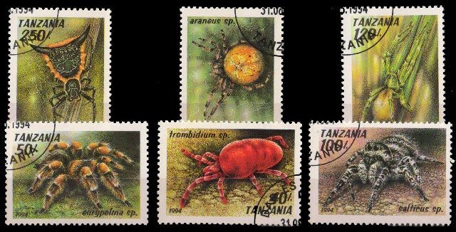 TANZANIA 1994 – Arachnids, Spiders, Set of 6, Used, S.G. 1822-1827