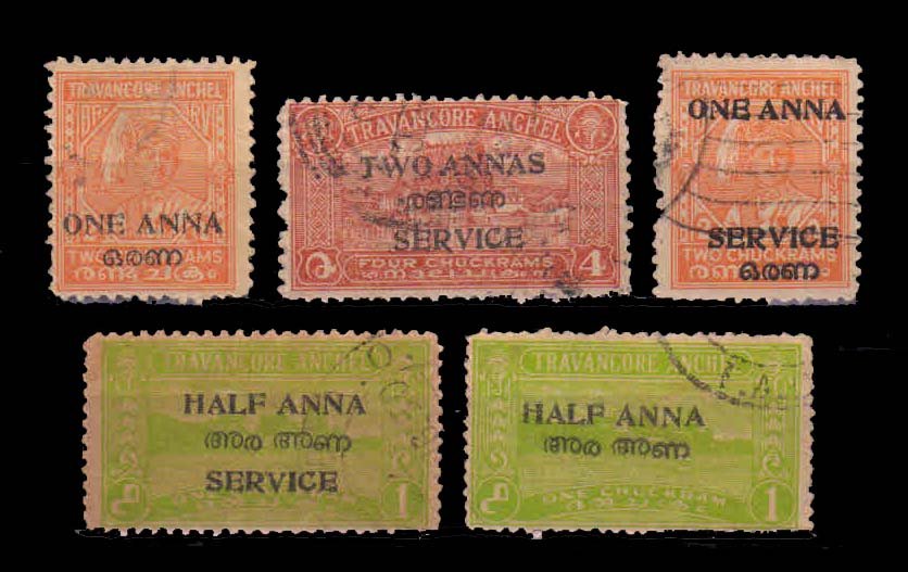 TRAVANCORE COCHIN – 5 Different Old Stamps