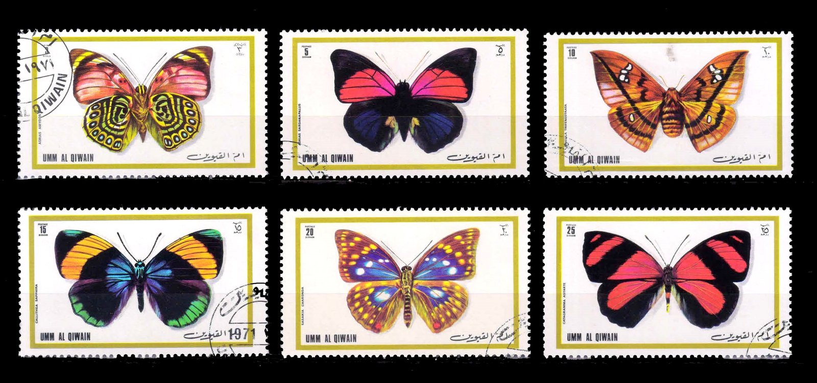 UMM AL QIWAIN 1971 – Butterflies, Set of 6 Stamps, Cancelled