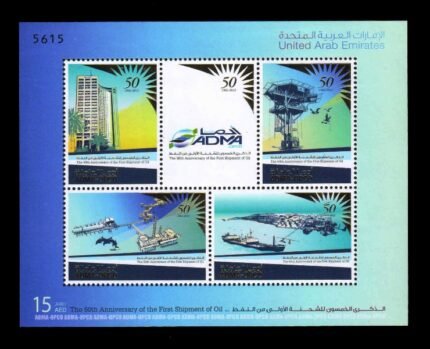 UNITED ARAB EMIRATES (UAE) 2012 – ADMA, OPCO, 50th Anniversary of the 1st Shipment of Oil, Miniature Sheet, Gold Foil, MNH, S.G. MS 1113, Cat. £ 35