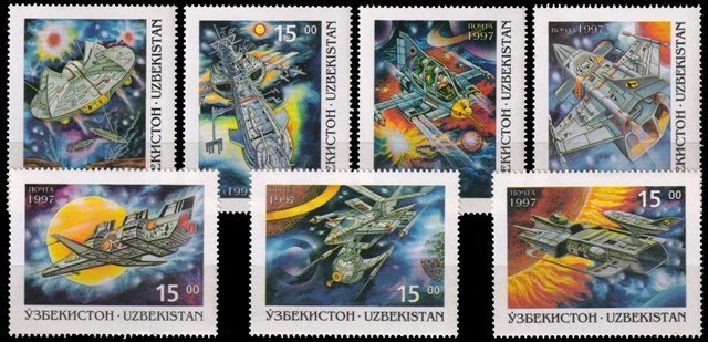 UZBEKISTAN 1997-Fantasy Spacecraft, Sun, Planet, Set of 7, MNH, S.G. 127-133, Cat ? 18