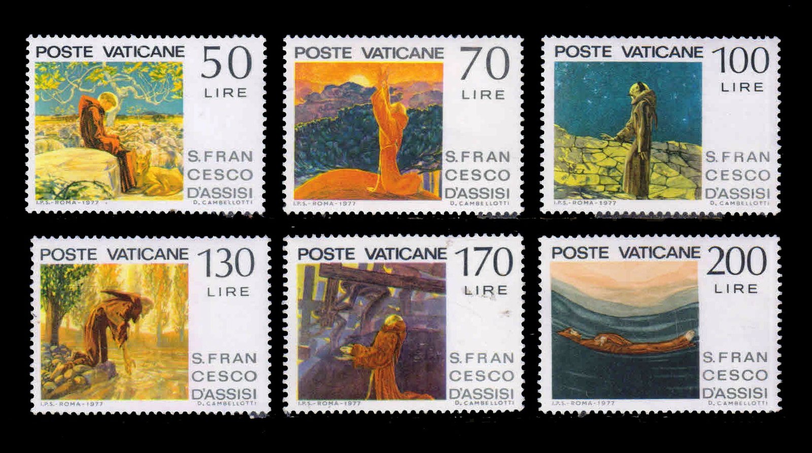 VATICAN CITY 1977 – Paintings, St. Francis of Assisi, Set of 6 Stamps, MNH, S.G. 671-676