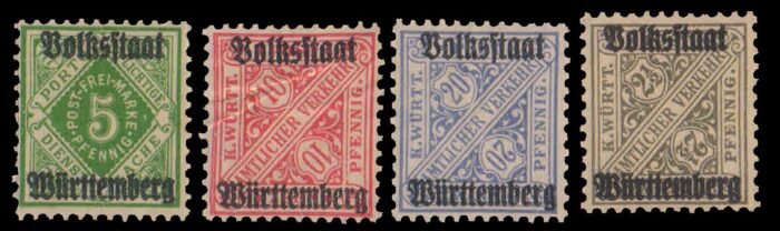 WURTTEMBERG 1919, 4 Different Official Old Stamps, Surcharged, Mint Stamps (Former German state)