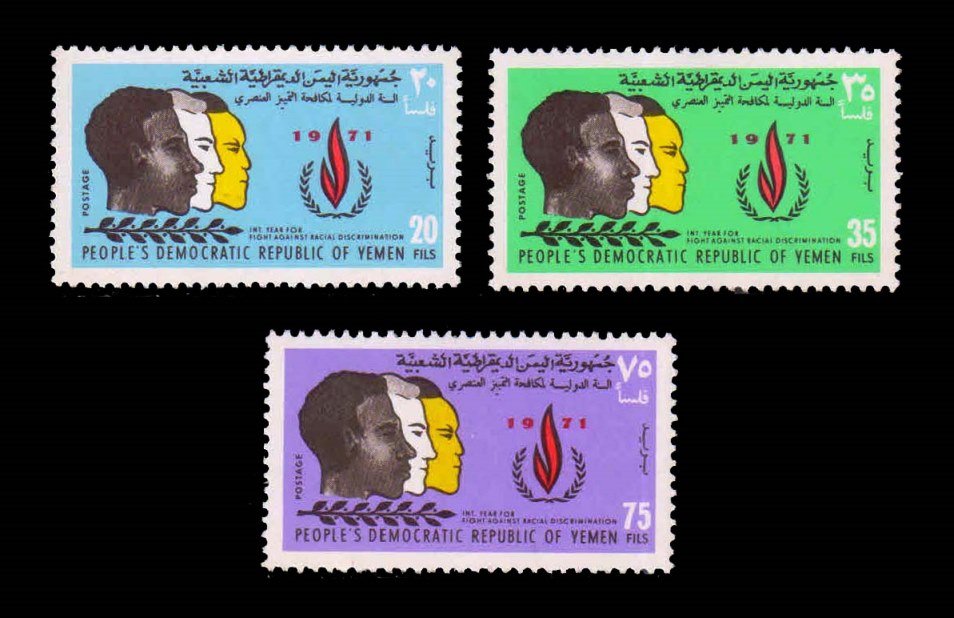 YEMEN (PDR) 1971 – Racial Equality Year, Heads of Three Races, Set of 3 Stamps, MNH, S.G. 72-74