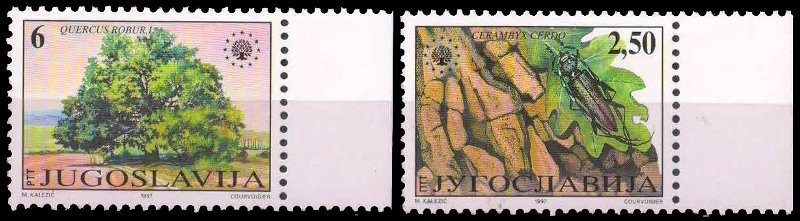 YUGOSLAVIA 1997, Nature Protection, Long horn Beetle & Pedunclete Oak, Set of 2, MNH, S.G. 3089-90-Cat ? 4.61