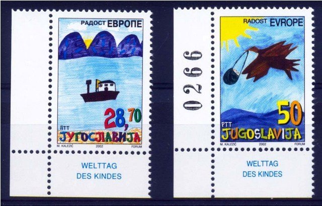 Yugoslavia 2002, Joy in Europe, Children Day Houseboat & Bird, S.G. 3358-3359, Set of 2, MNH Cat ? 13-26