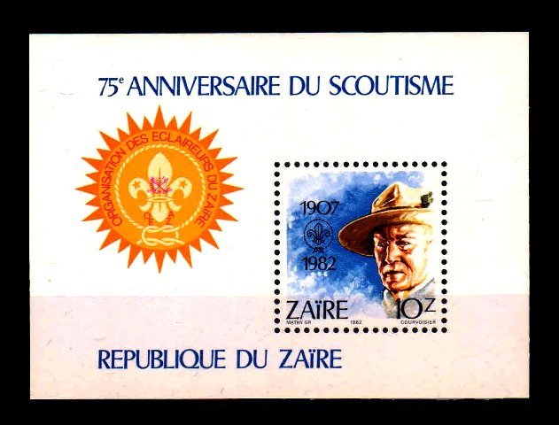 ZAIRE 1982 – Souvenir Sheet Scout Boy scout Lord Baden Powell, MNH